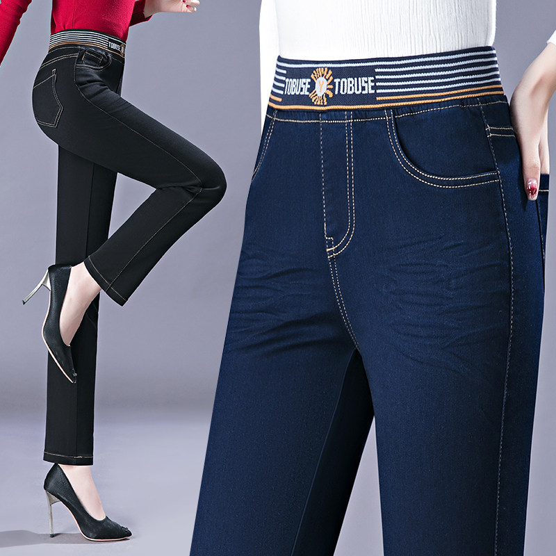 中年女士牛仔裤妈妈款直筒高腰弹力秋冬新款裤子女长裤中老年女裤