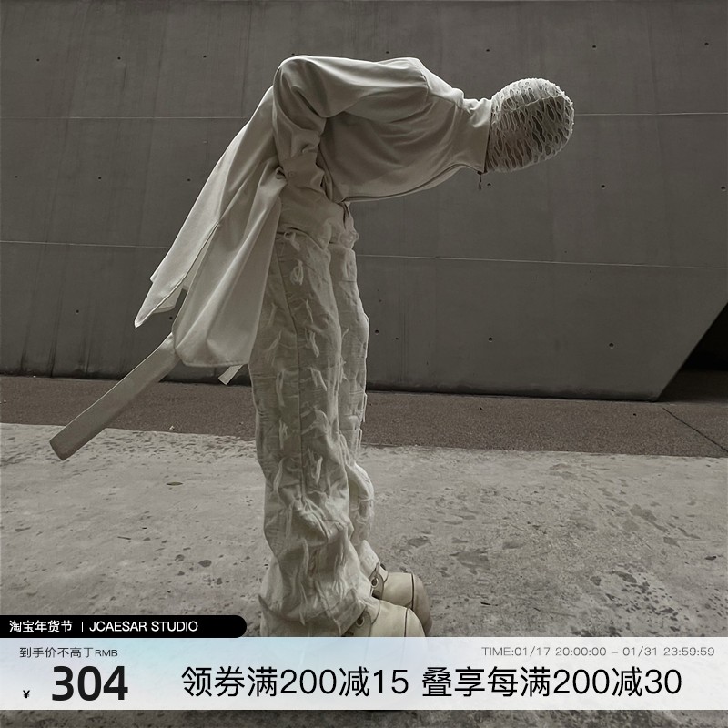 JCAESAR Mummified 小众设计木乃伊流苏牛仔裤cleanfit纯色长裤