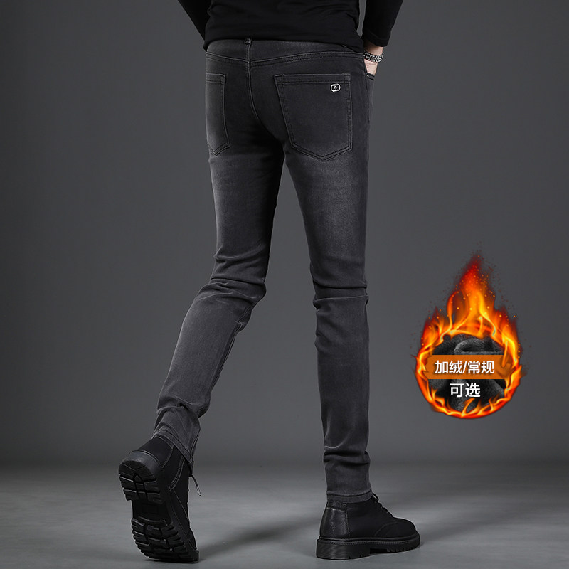 啄木鸟男士牛仔裤2023新款修身小脚秋冬季加绒加厚弹力休闲裤子男
