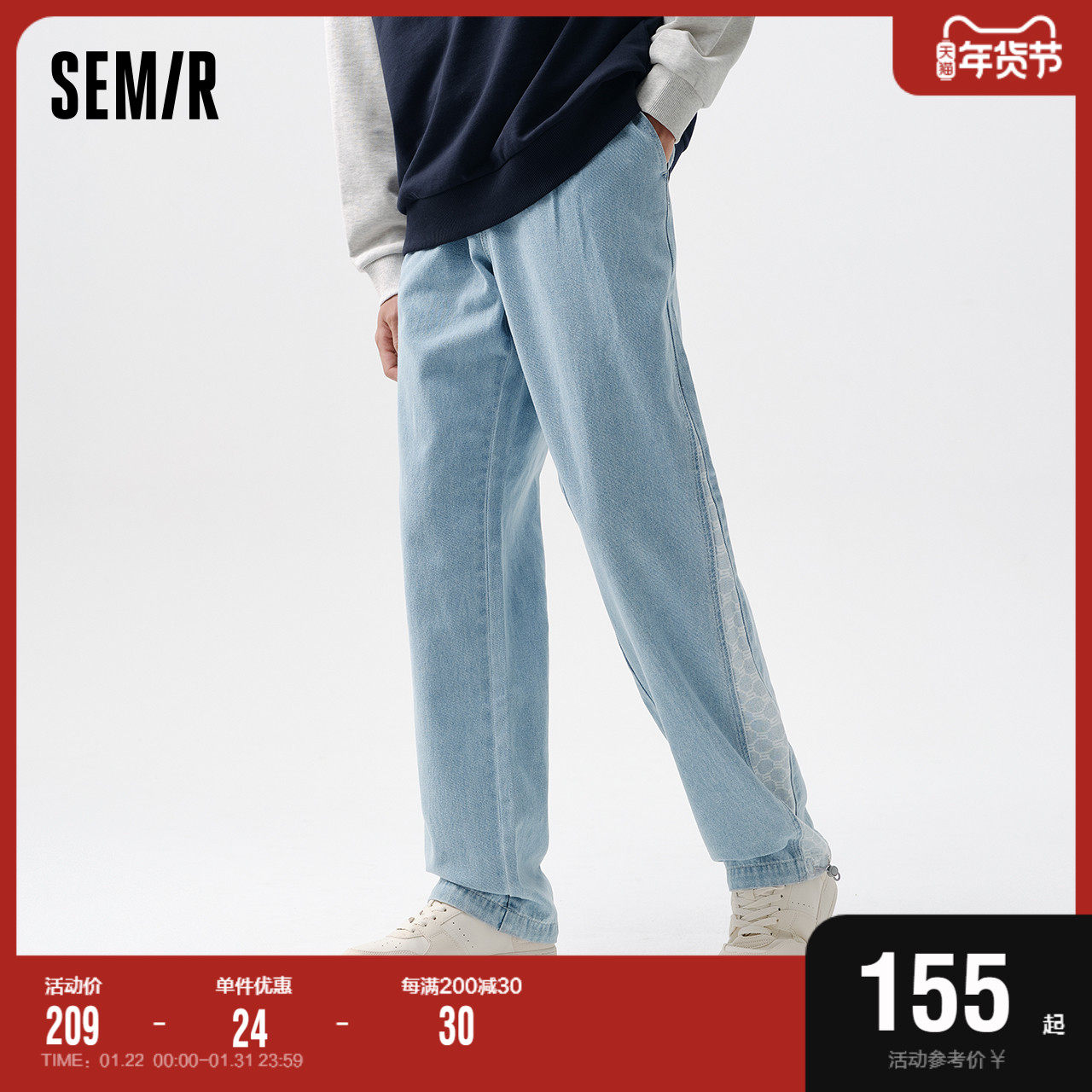 森柔牛仔森马牛仔裤男裤子2024春季新款时尚拼接直筒裤宽松抽绳潮