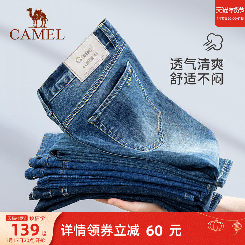 骆驼男装直筒牛仔裤男2023秋季新款中年修身弹力潮流休闲时尚长裤