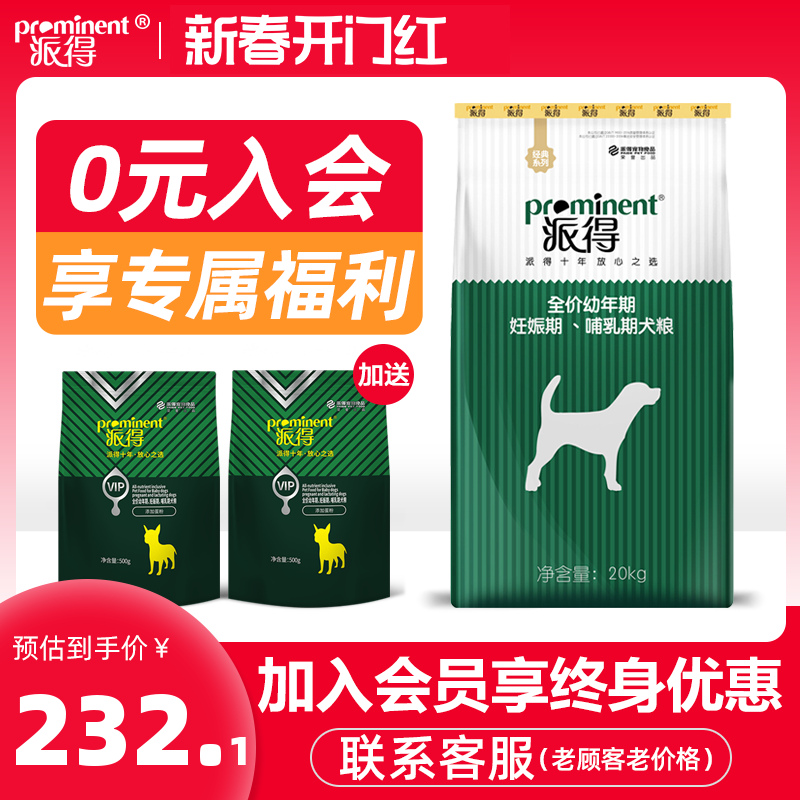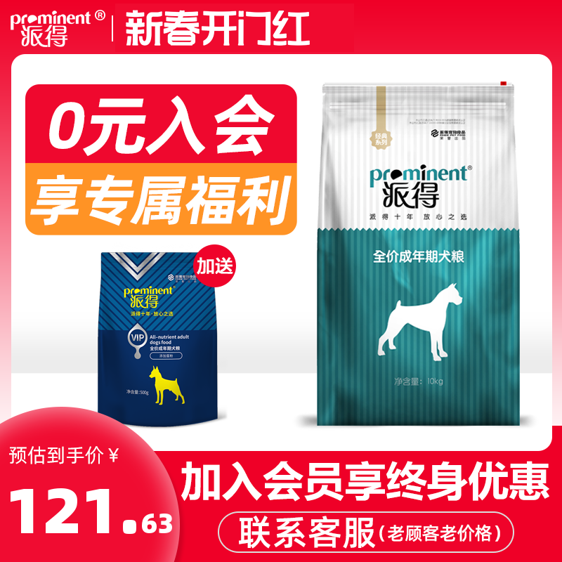 派得狗粮成犬粮10kg公斤20斤金毛萨摩巴哥法斗柯基柴犬通用主粮