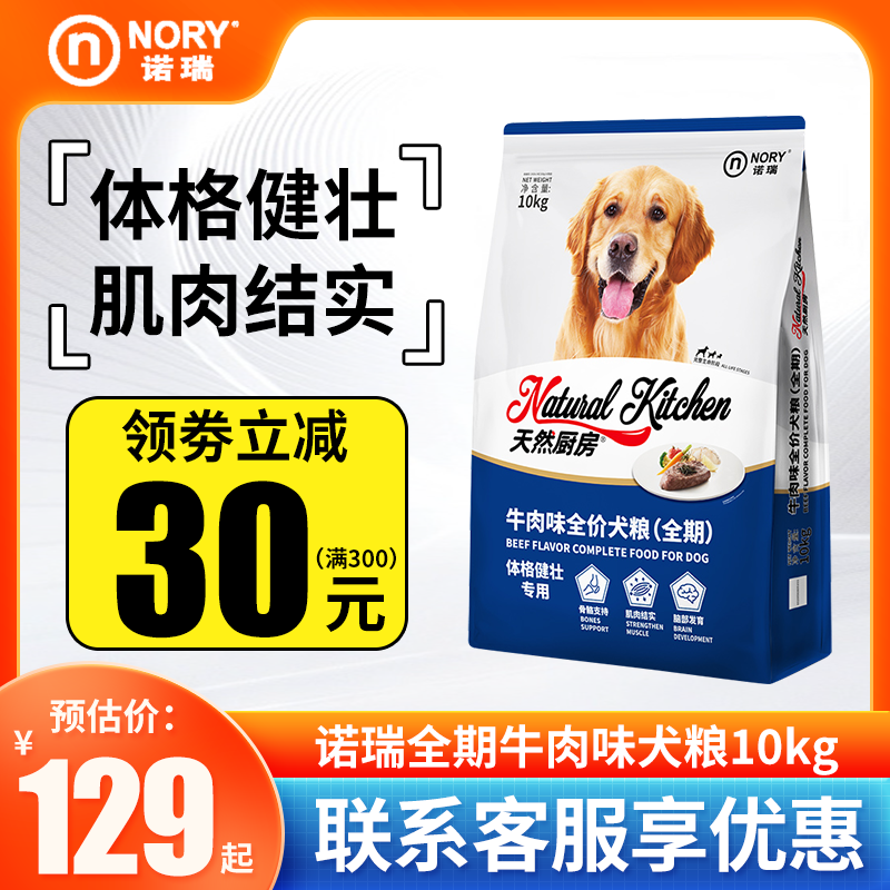 诺瑞狗粮牛肉味天然厨房成犬粮10kg20斤德牧金毛通用型宠物狗主粮