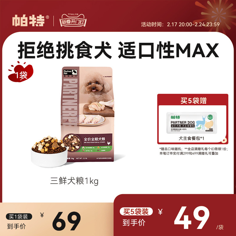 帕特狗粮冻干四拼成犬幼犬全期全品种主粮低敏适口宠物三鲜犬粮