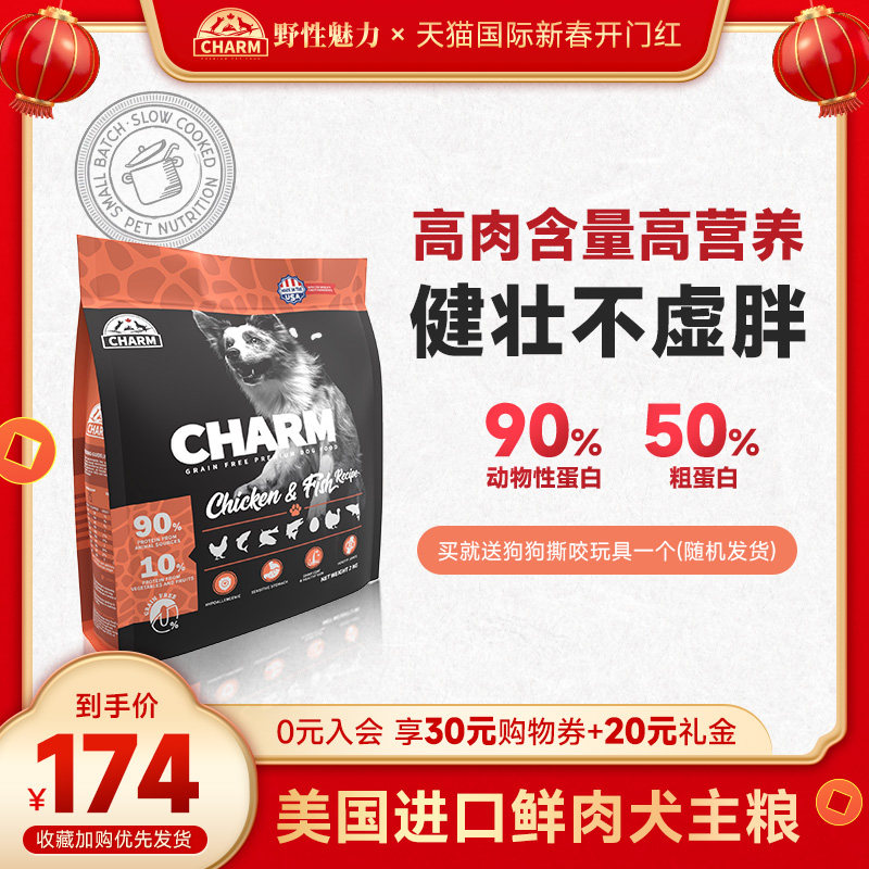 CHARM野性魅力进口狗粮鲜鸡肉幼犬小型犬全犬无谷全价犬主粮10kg