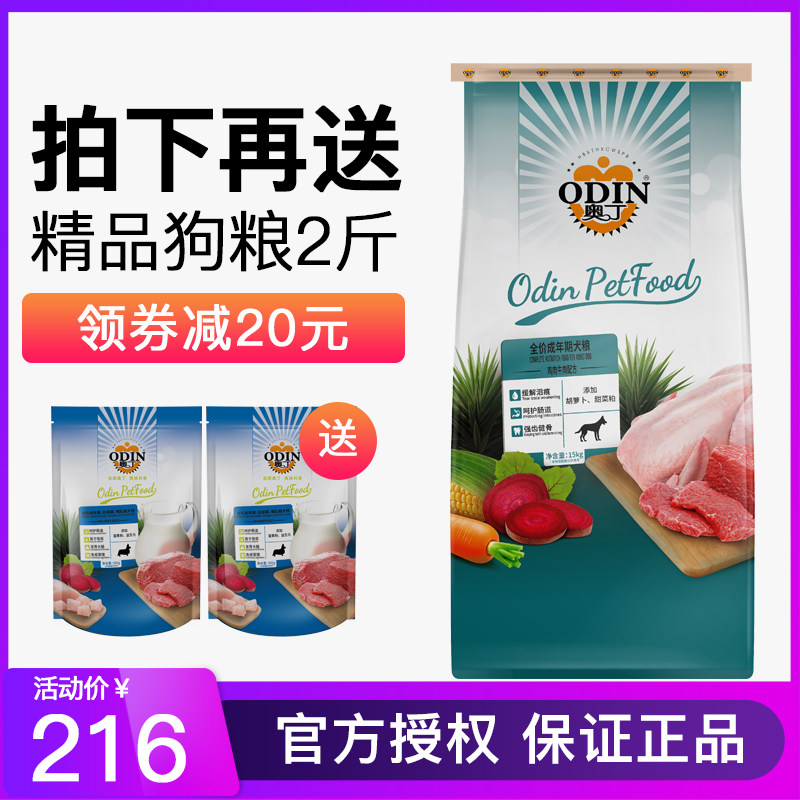 奥丁狗粮 天然粮15kg小中大型成犬泰迪金毛德牧通用型犬主粮包邮