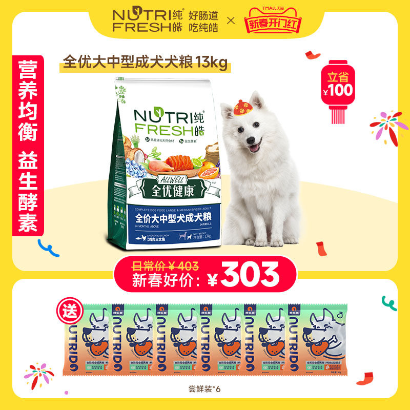 纯皓狗粮大中型犬成犬狗粮犬粮主粮金毛哈士奇全优健康犬粮13kg