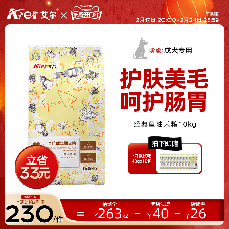 艾尔经典鱼油成犬粮10kg通用中大型20斤装主粮狗粮金毛萨摩哈士奇