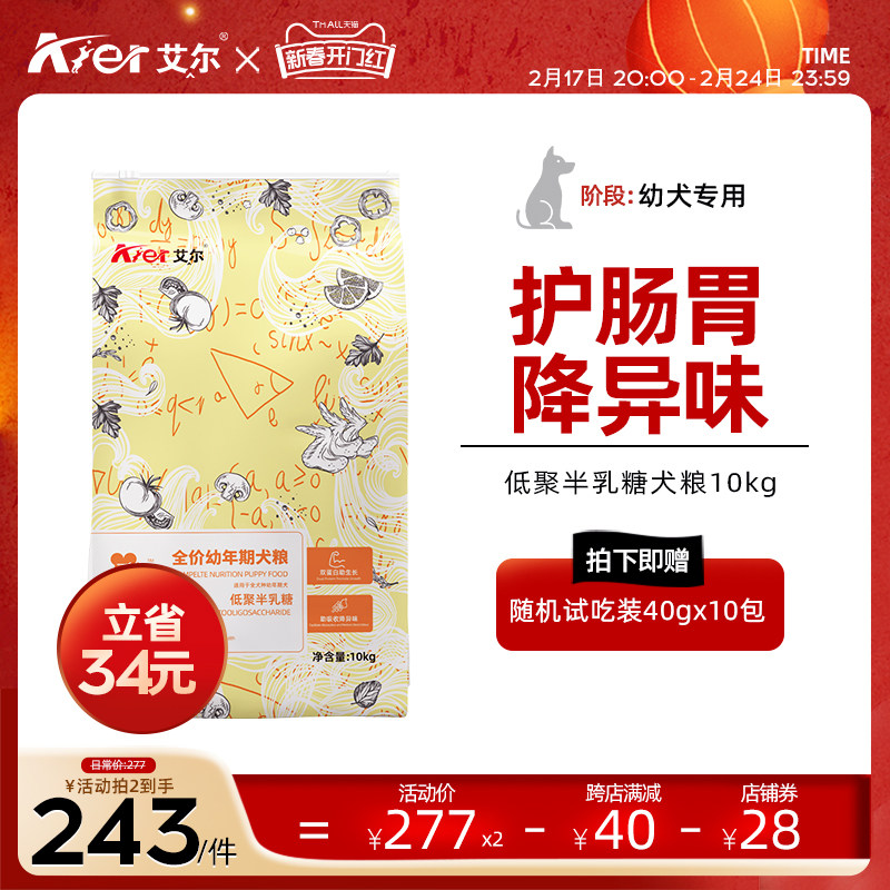 艾尔低聚半乳糖幼犬专用粮10kg通用型20斤主粮狗粮泰迪比熊金毛