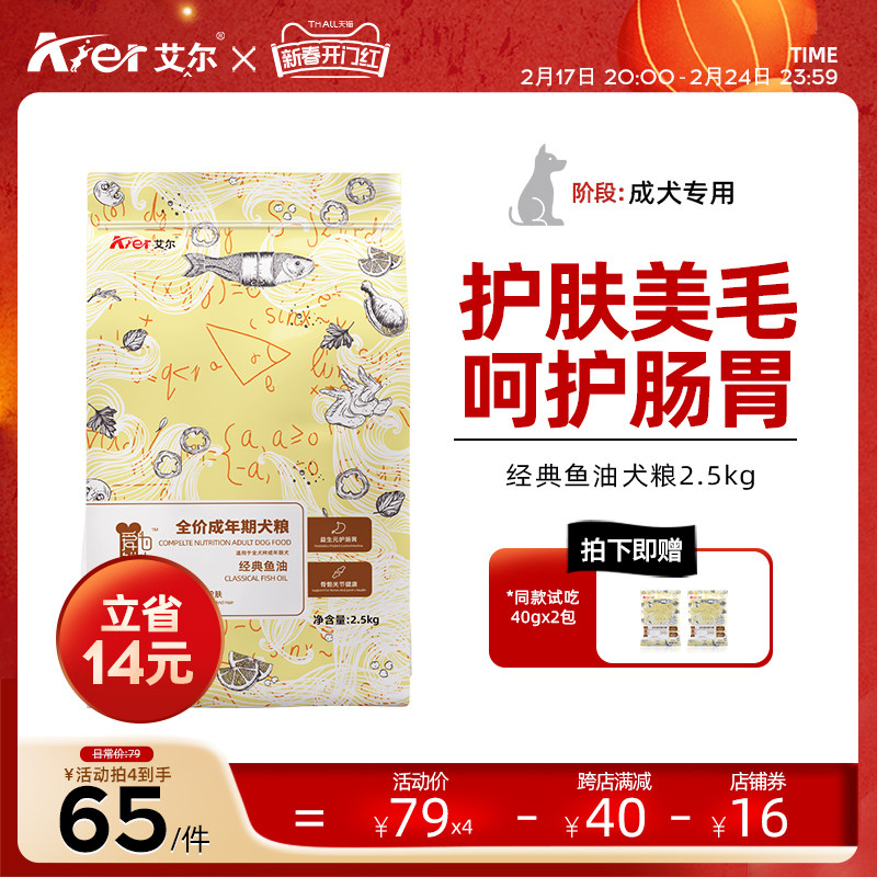 艾尔经典鱼油成犬粮2.5kg全犬通用型主粮5斤狗粮泰迪贵宾金毛萨摩