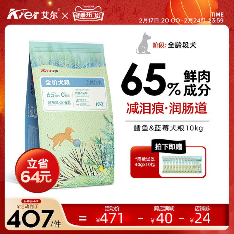 艾尔鳕鱼蓝莓犬粮10kg成幼通用型鲜肉20斤装主粮狗粮泰迪法斗贵宾