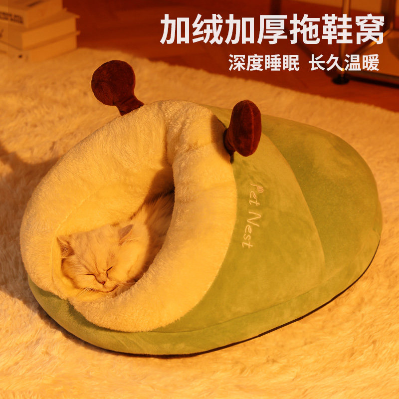 拖鞋猫窝冬季保暖半封闭式四季通用宠物猫床狗窝睡觉垫子冬天保暖