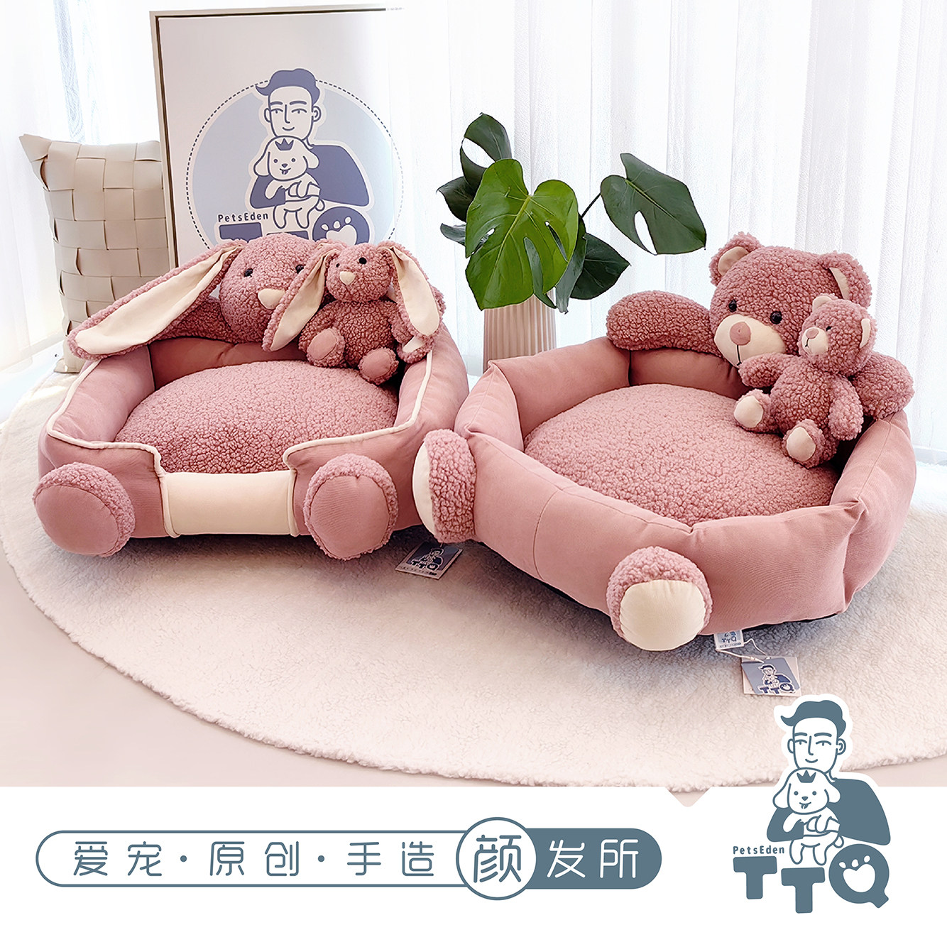 TTQ原创网红萌萌兔宠物窝抱抱熊宠物玩具猫窝狗窝毛绒保暖可拆洗