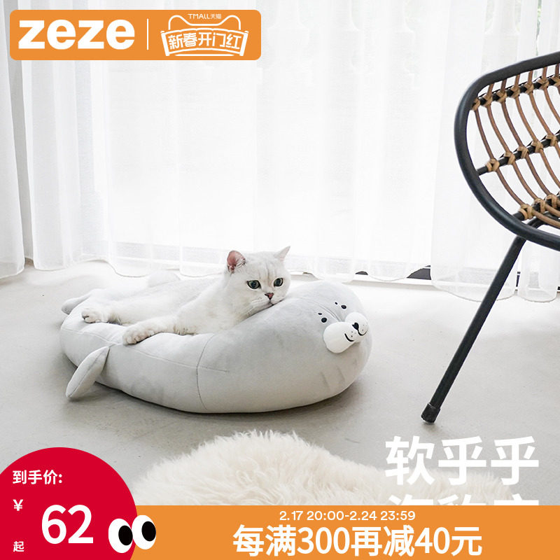 zeze海豹猫窝半封闭冬季保暖狗窝冰垫凉席四季通用夏季可水洗