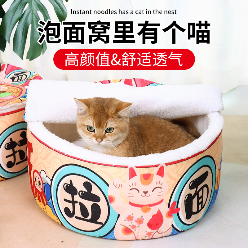 宠物猫窝保暖泡面猫窝垫子加绒四季通用猫咪冬季封闭方便面桶狗窝