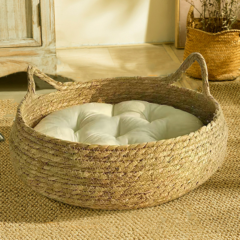 新款藤编猫窝四季通用宠物网红猫窝垫耐抓日式猫房子狗窝透气舒适