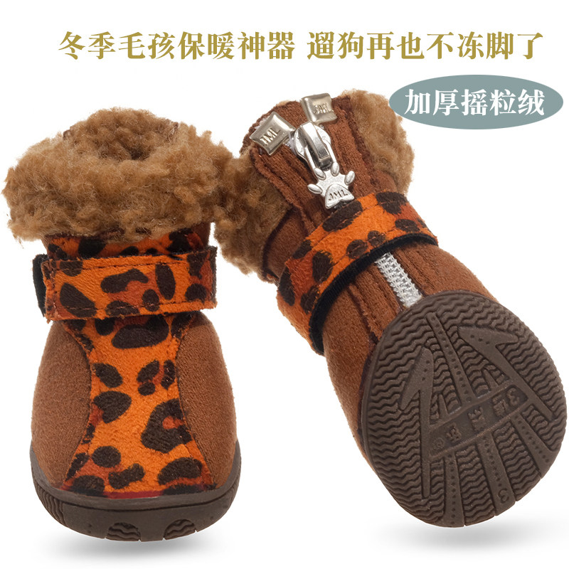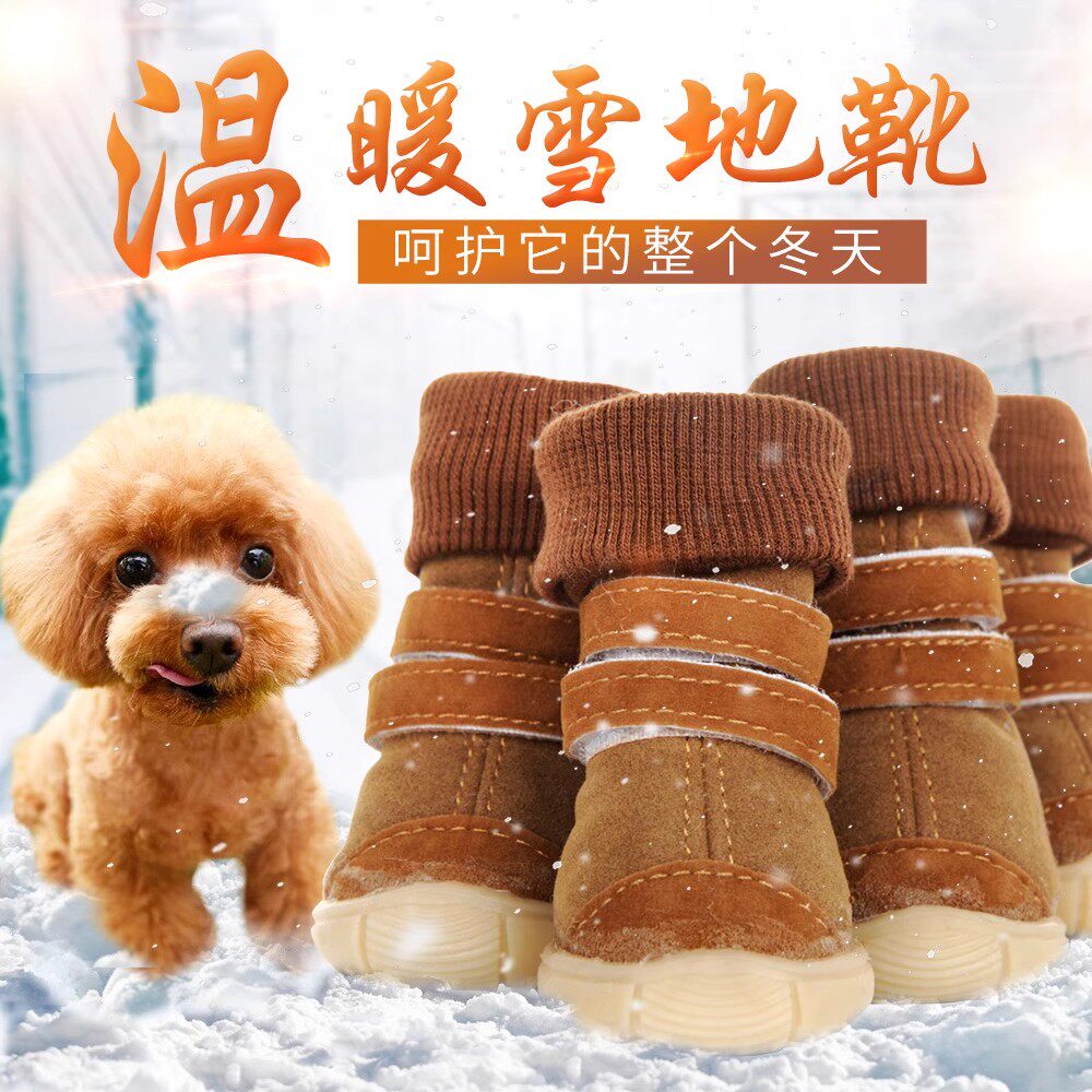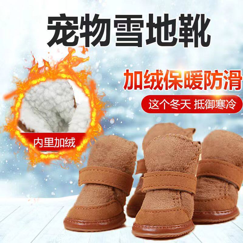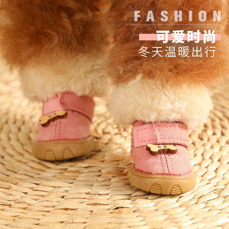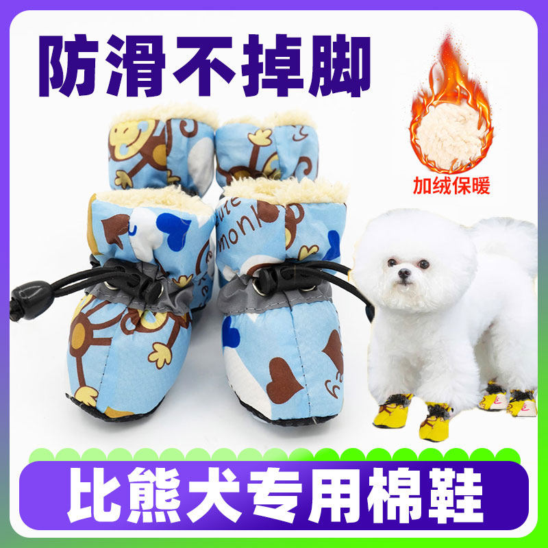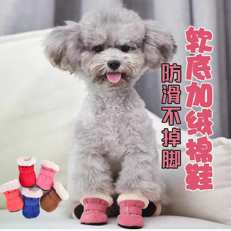 泰迪鞋子冬季加绒棉鞋宠物鞋棉靴小狗鞋保暖柔软防滑雪纳瑞不掉脚