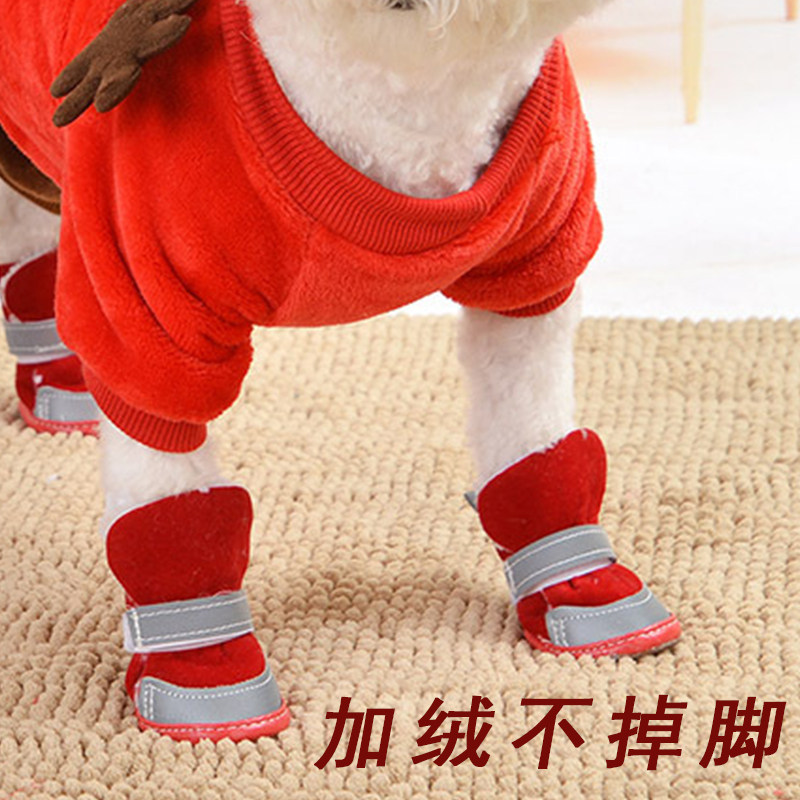 狗狗鞋子新年防掉小型犬泰迪冬季外出保暖加绒棉鞋靴宠物防滑脚套