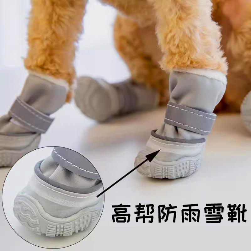 狗狗鞋子冬季加绒防水防掉雨鞋雪地靴秋冬天小型犬出门防脏滑脚套