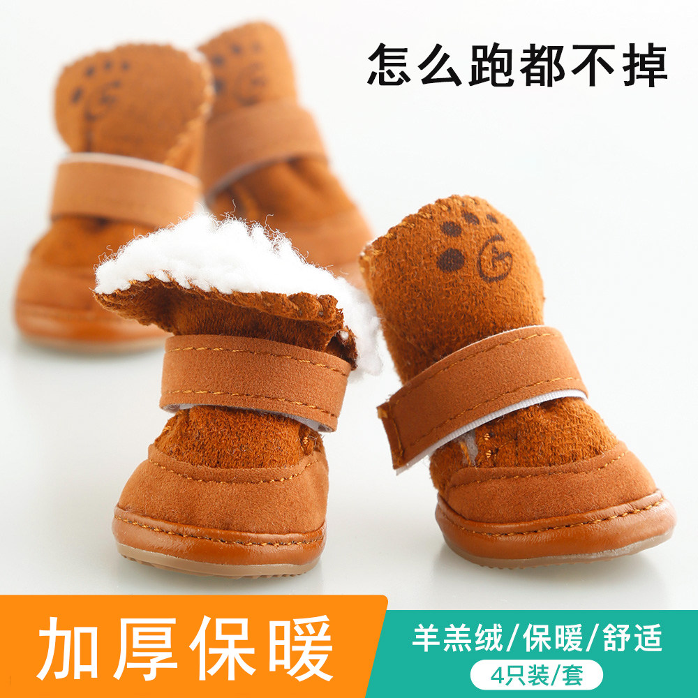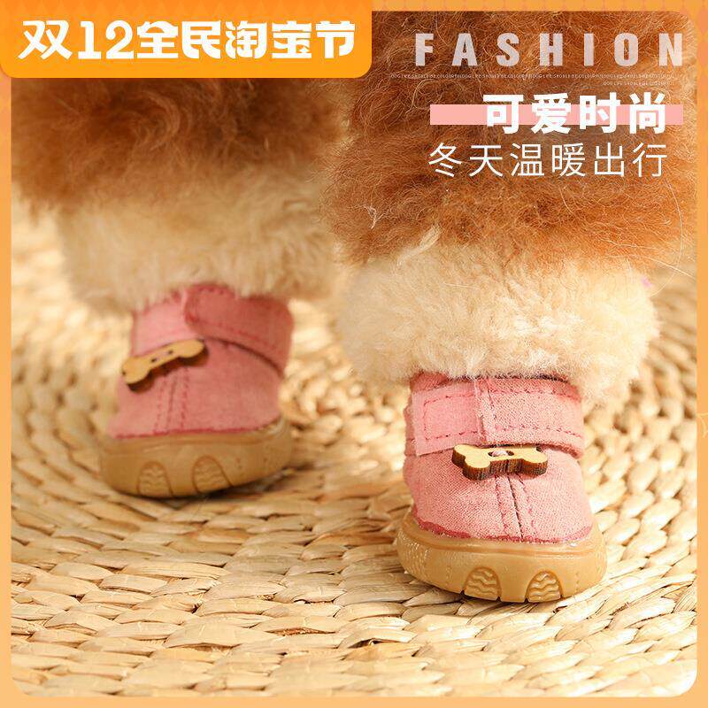 狗狗鞋子冬季不掉中小型犬防掉加绒泰迪柴犬比熊软底可爱宠物棉鞋