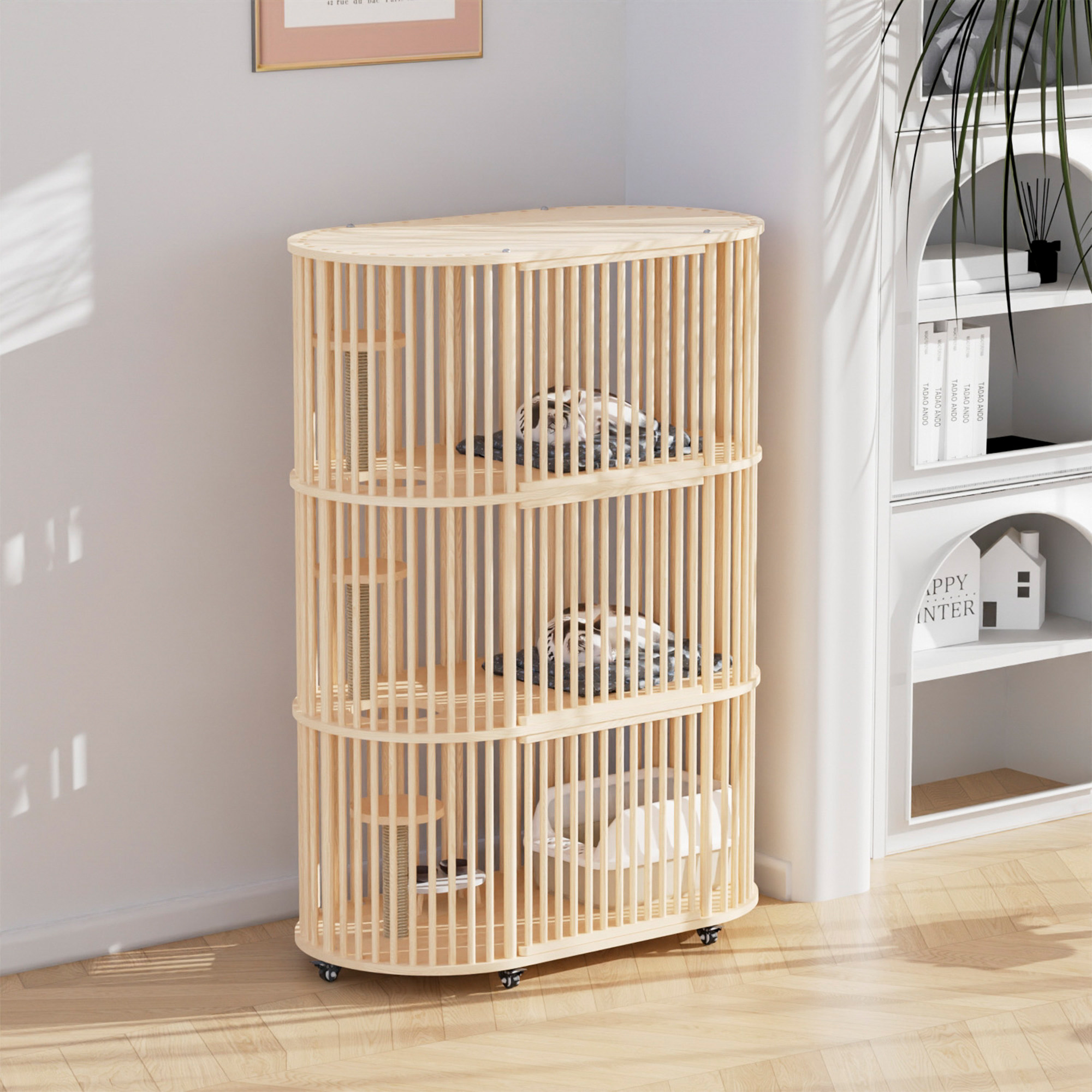 ZNZI新款简约全实木三层猫笼猫别墅猫舍猫柜定制豪华家用带厕所笼