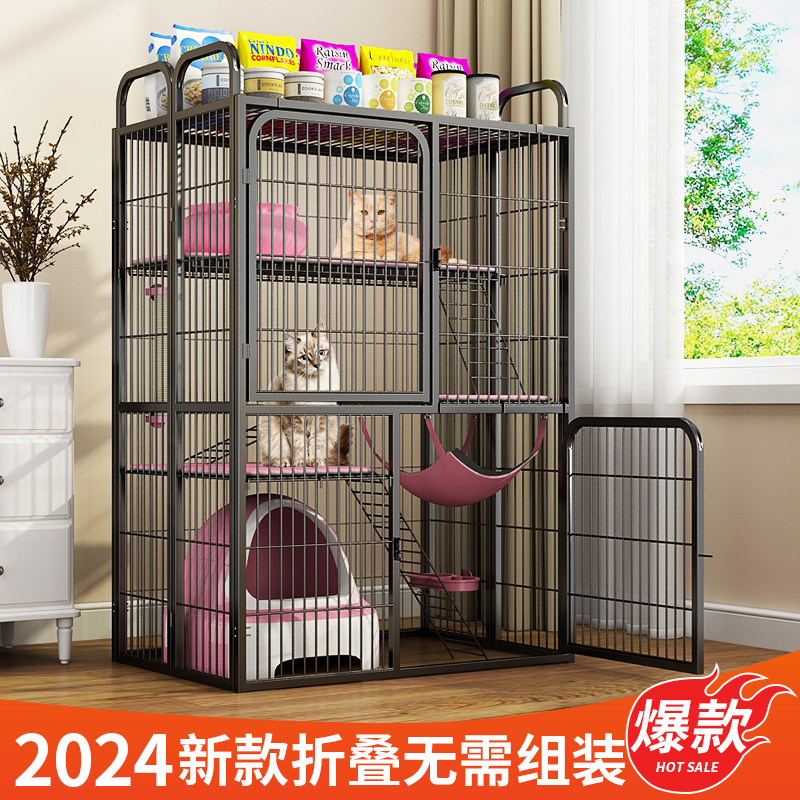 猫笼子家用室内大空间猫窝可折叠别墅厕所一体不占地大号两层猫舍