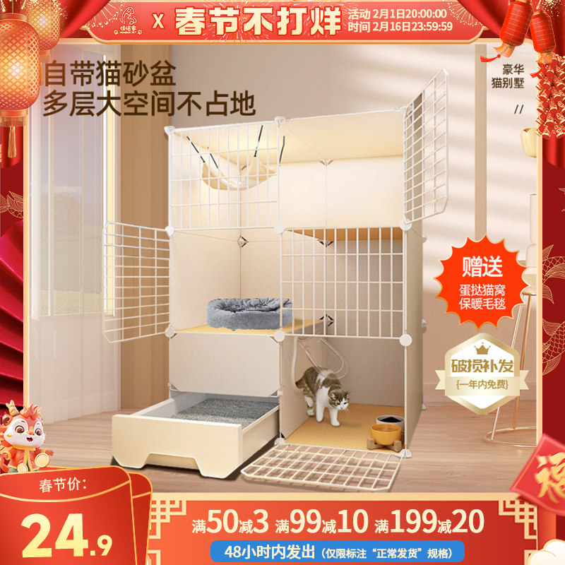 猫笼子家用室内猫厕所一体猫砂盆自由组装猫咪猫屋宠物笼子猫别墅