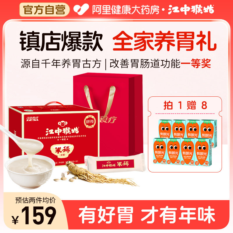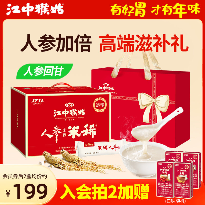 江中猴姑米稀人参米糊30天装养胃食品营养品早餐猴头菇年货礼盒