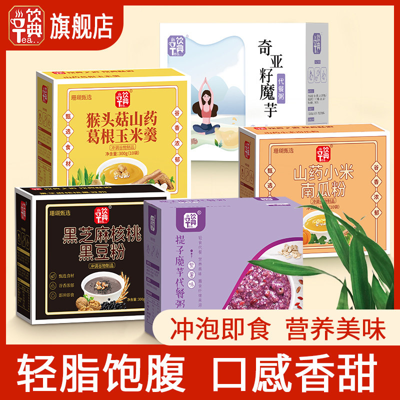 饮典提子魔芋奇亚籽紫薯代餐粥黑芝麻猴头菇玉米羹山药南瓜粉早餐