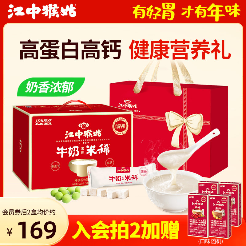 江中猴姑米稀牛奶米糊30天装高蛋白高钙养胃早餐猴头菇年货礼盒
