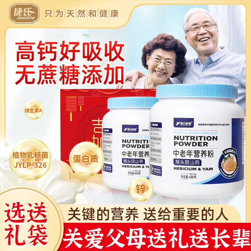 捷氏猴头菇山药中老年人营养米粉680g高钙代餐食品无蔗糖添加