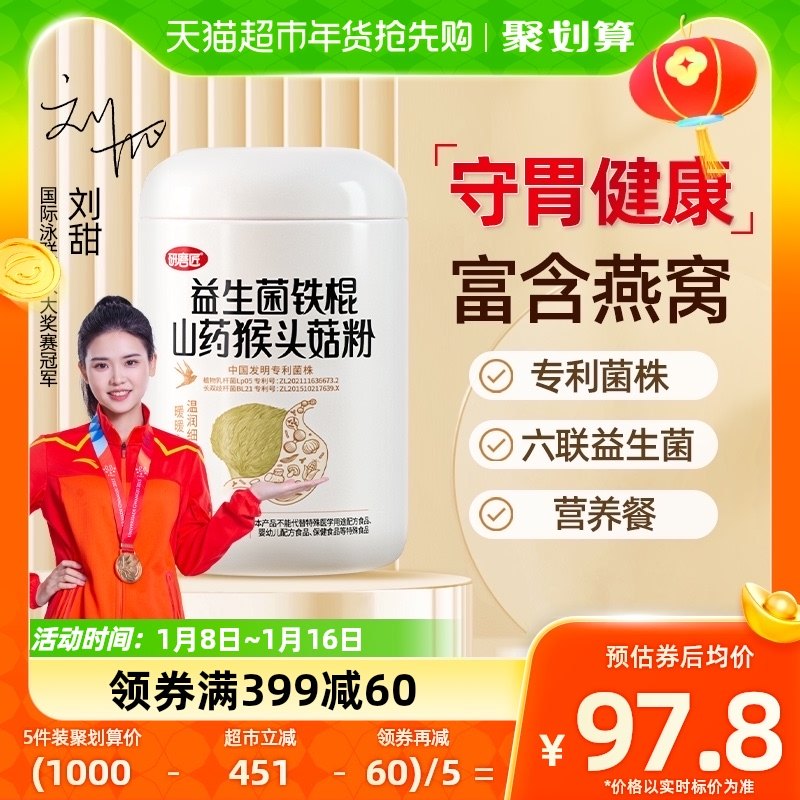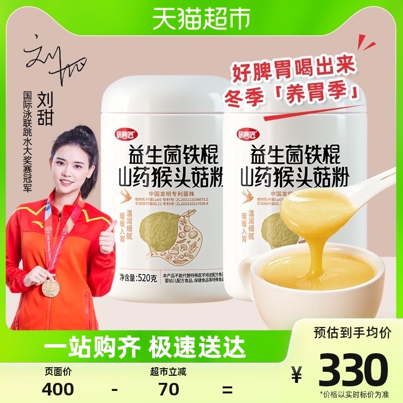 研磨匠猴头菇铁棍山药粉养胃粉520gx4罐五谷杂粮粥米糊胃营养代餐