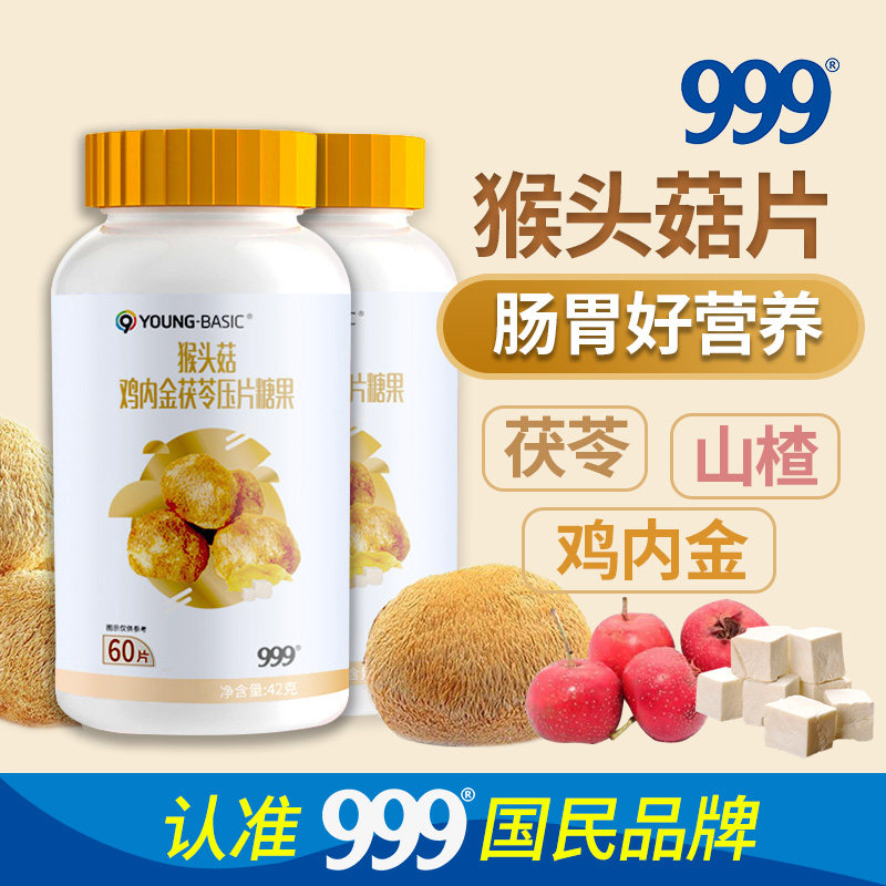 999猴头菇鸡内金茯苓养胃肠儿童成人口服压片糖果猴头菇片