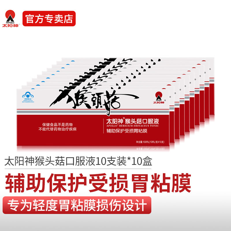 太阳神猴头菇口服液辅助保护受损胃粘膜中老年人调理养护肠胃10盒