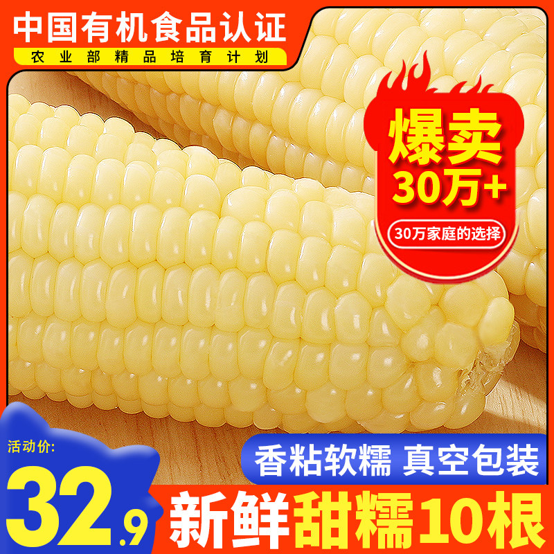 【新货】有机甜糯玉米棒新鲜粘黏白糯米玉米真空装非东北水果