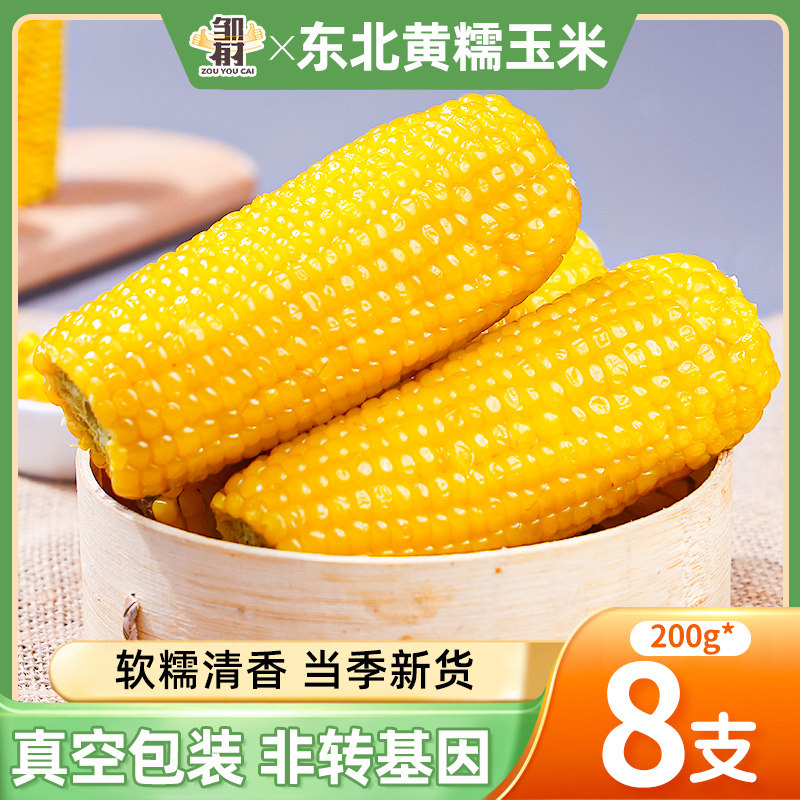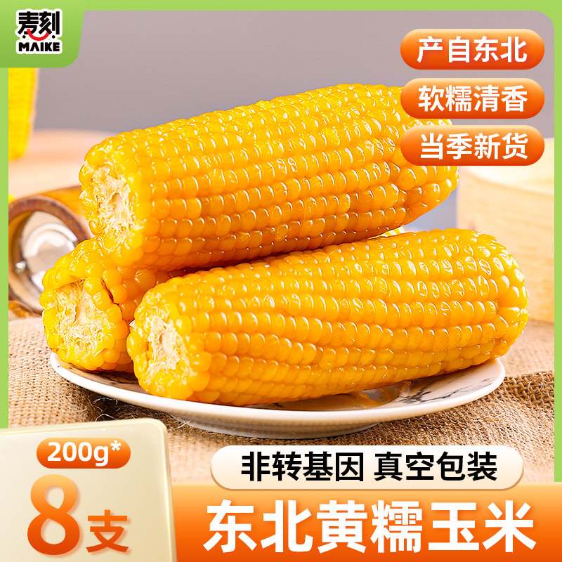 东北黏糯玉米棒8支 新货真空包装黄苞米现摘新鲜甜玉米粒粘非即食