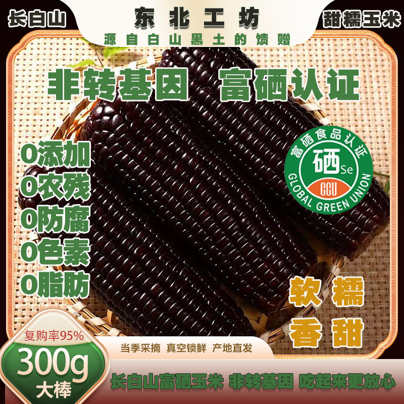 0脂肪代餐主食玉米非转基因苞米新鲜东北黑糯玉米真空富硒大棒玉