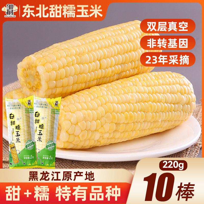 东北玉米白糯甜水果玉米10棒真空包装现摘新鲜粘黏玉米代餐非即食