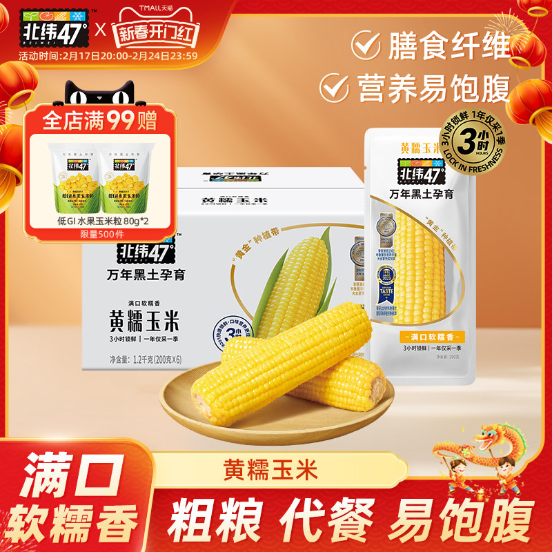 北纬47度黄糯玉米东北糯玉米新鲜甜玉米真空装黏粘玉米棒早餐苞米