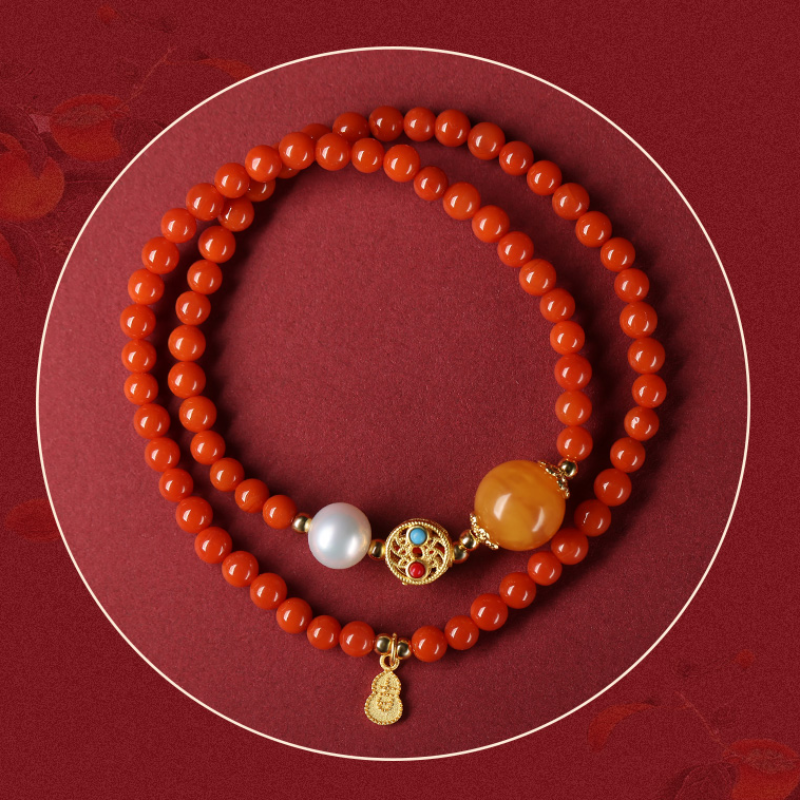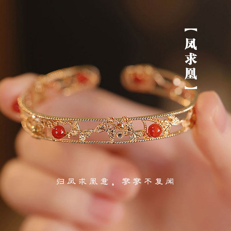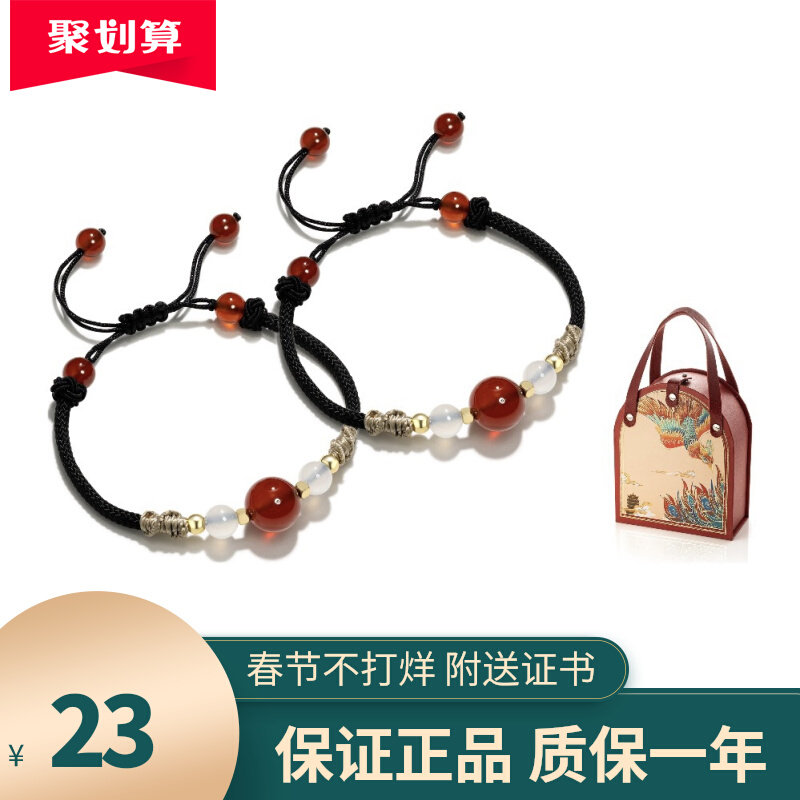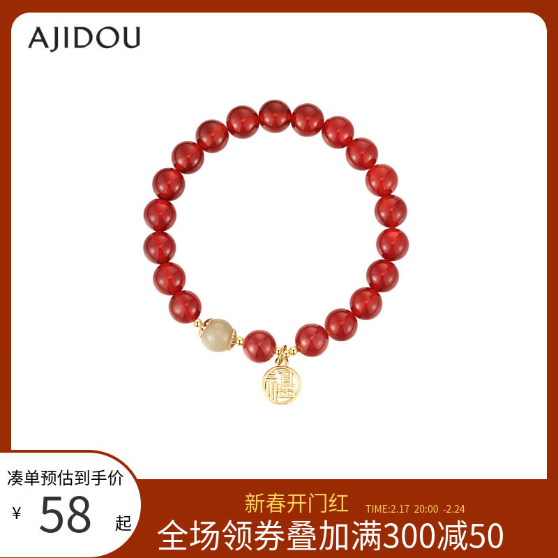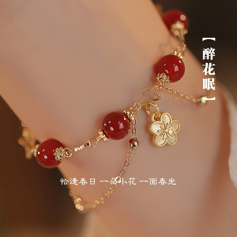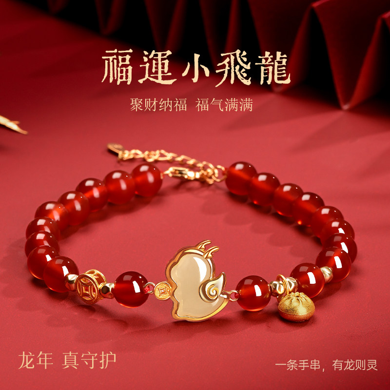 中国黄金红玛瑙手串女款轻奢小众手链本命年礼物送女友