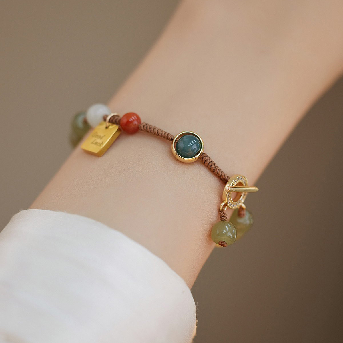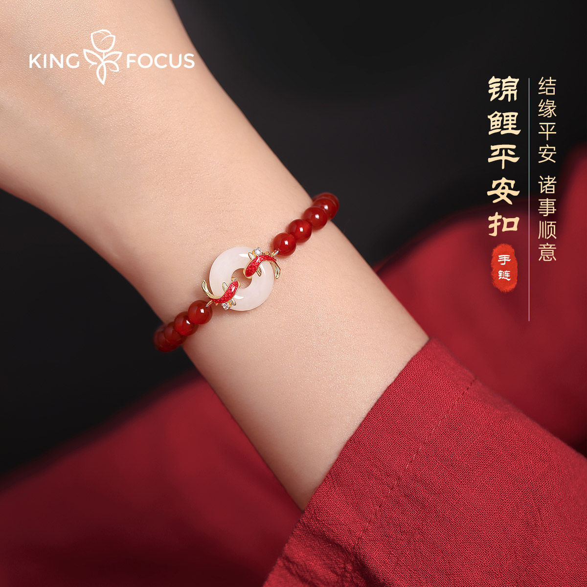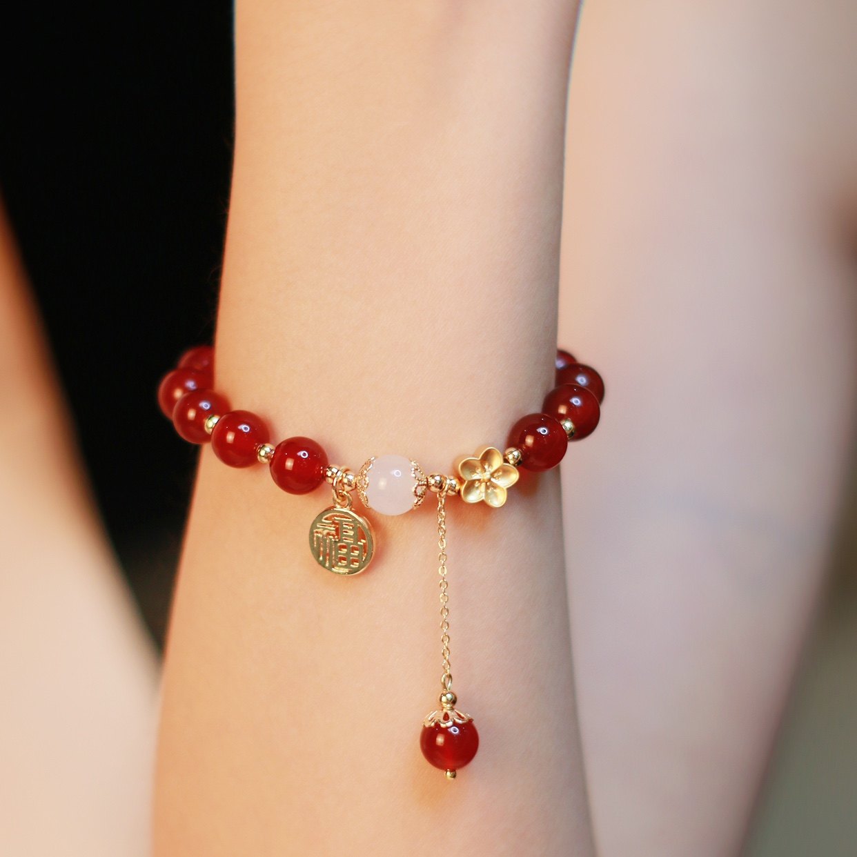 中国黄金红玛瑙手串女款轻奢小众手链本命年礼物送女友