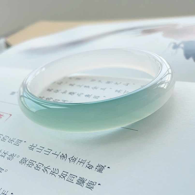 { 只此青绿 }天然玛瑙扁条手镯 文艺清新油青色镯子 玉镯