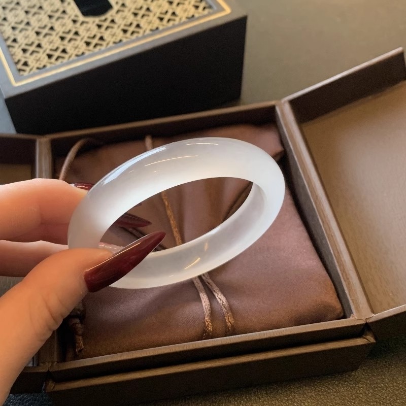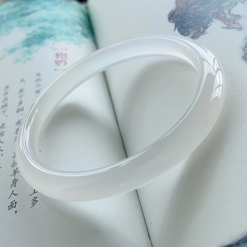 { 白月光 } 天然白玛瑙手镯 正品玛瑙扁条镯子 经典款温文尔雅