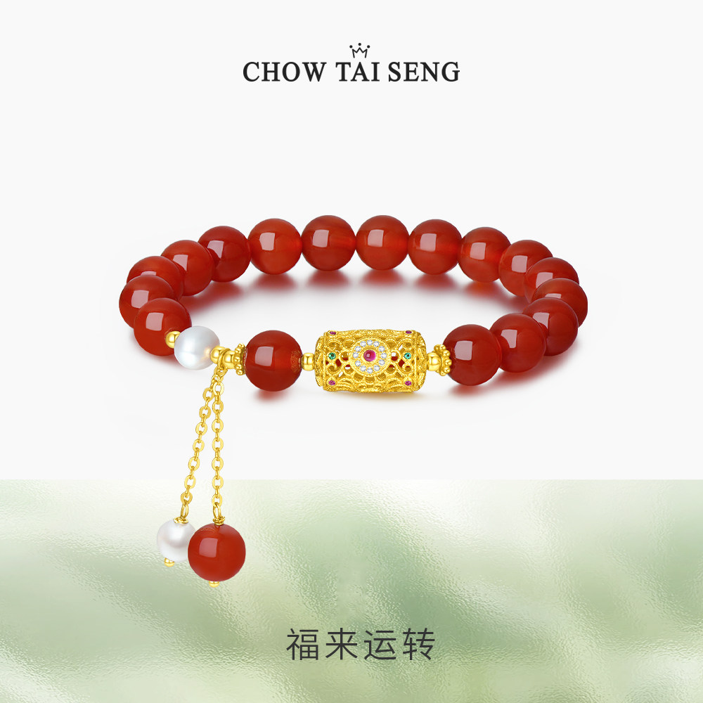 周大生时来运转玛瑙手串银S925年轻感小众设计感送女友情人节礼物