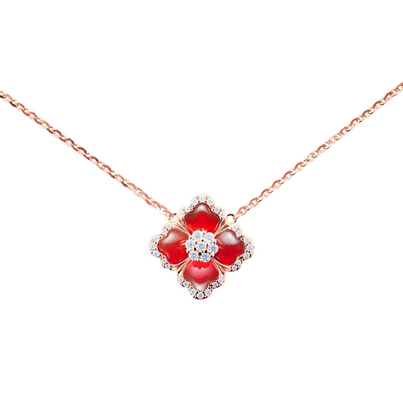 SUNS项链女纯银2024新款好运连连红玛瑙四叶草轻奢小众情人节礼物
