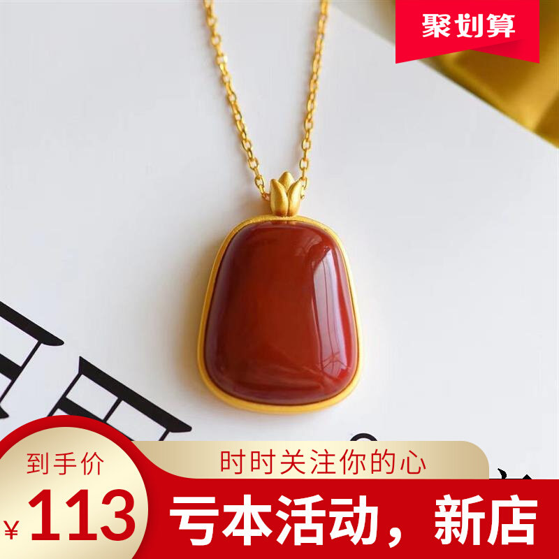 周六福金镶玉吊坠女黄金金珠红玛瑙挂件官方正品送女友情人节礼物