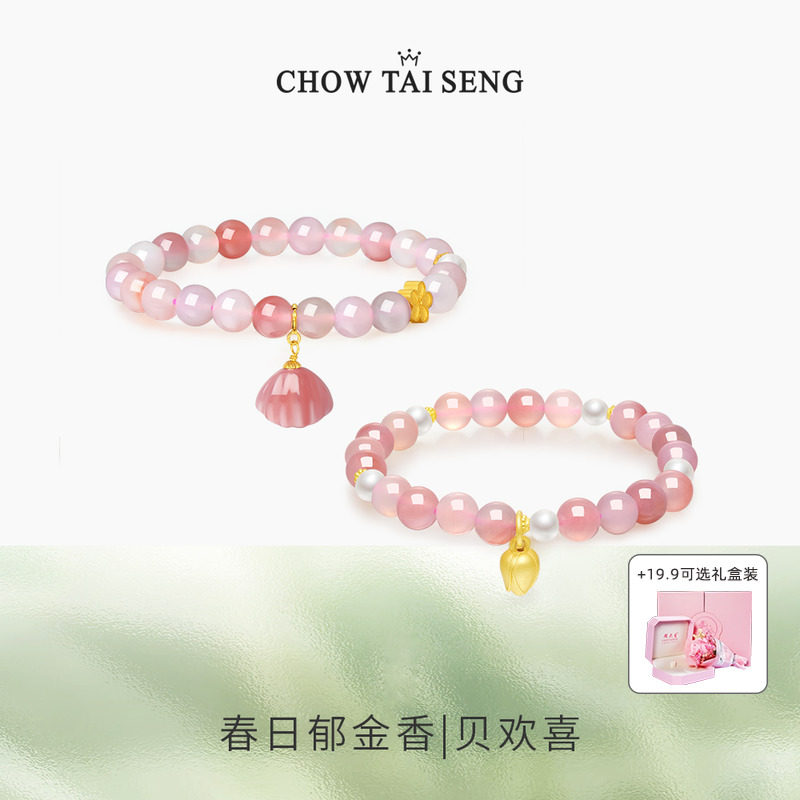 白玛瑙平安扣手绳桃之夭夭手链女生手链仙女粉气质送闺蜜女友礼物