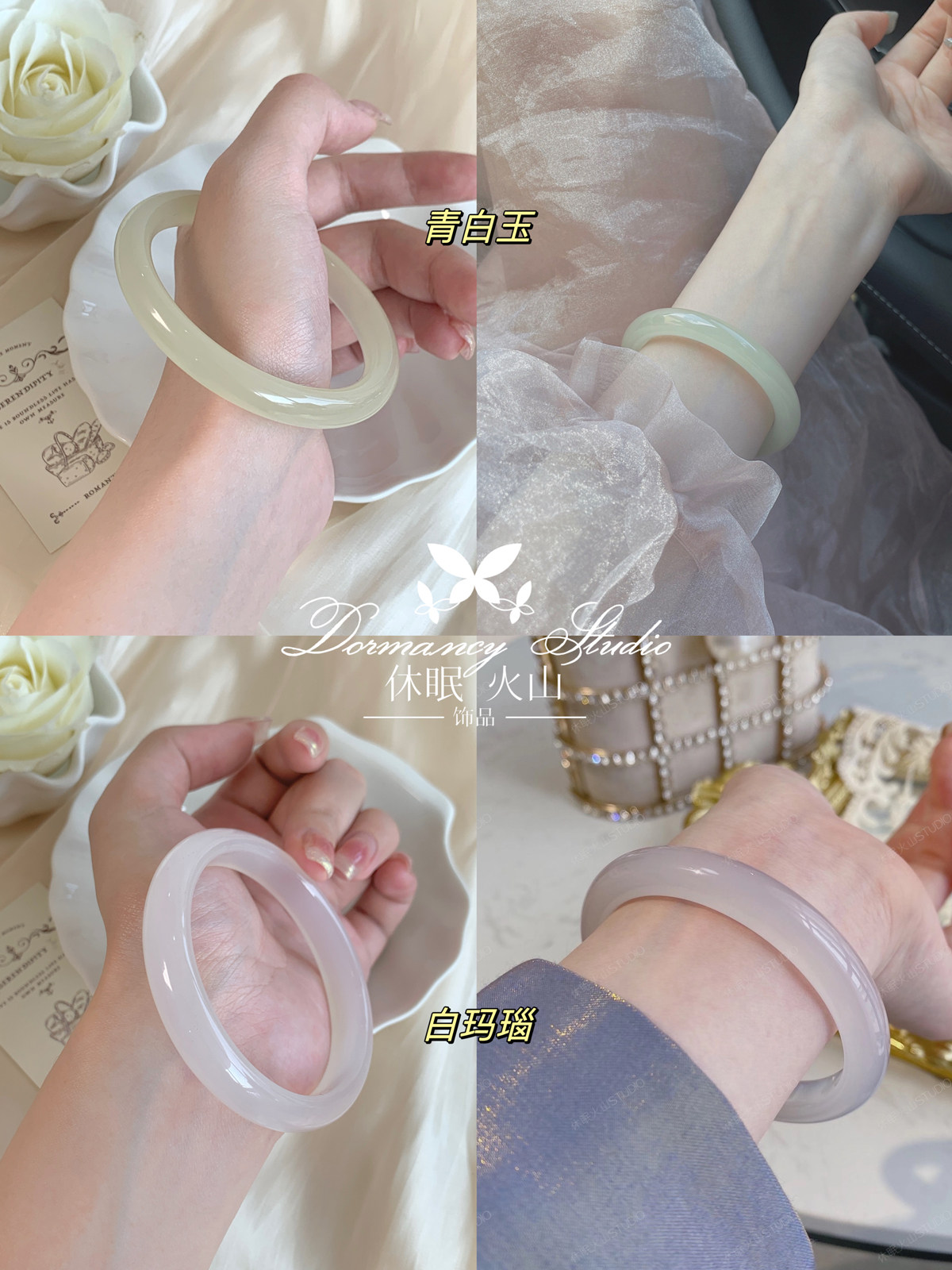 「仙女镯」天然荔枝冻白玛瑙青白玉手镯女冰种圆条玉镯年轻款私房