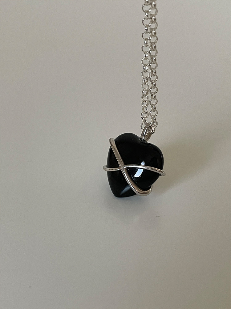 PAUSA ANN s925 MONENT系列 原创设计定制黑玛瑙大小爱心项链