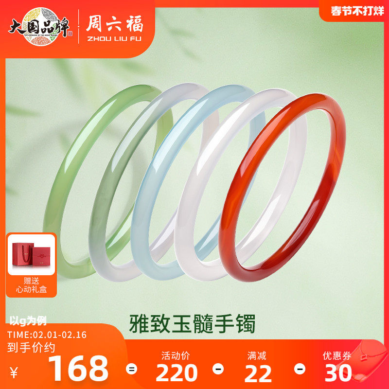 周六福国风玉髓手镯子国潮汉服玛瑙细条年轻款百搭气质送女友礼物